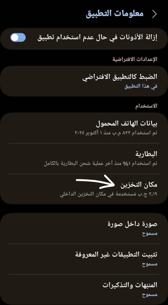 أو إعدادات التطبيق على حسب نوع جهازك وفى كل الأجهزة ثم تظهر كل التطبيقات التى ستظهر لك ادخل إلى تطبيق تطبيق ثم اذهب إلى مكان التخزين ، وانظر إلى البيانات والذاكرة المؤقتة قم بحذف الذاكرة المؤقتة ولا تضغط على حذف البيانات إلا للضرورة القصوى ( مرفق سكرين شوت ) للخطوات العملية عندما تكون مساحة التخزين ممتلئة .